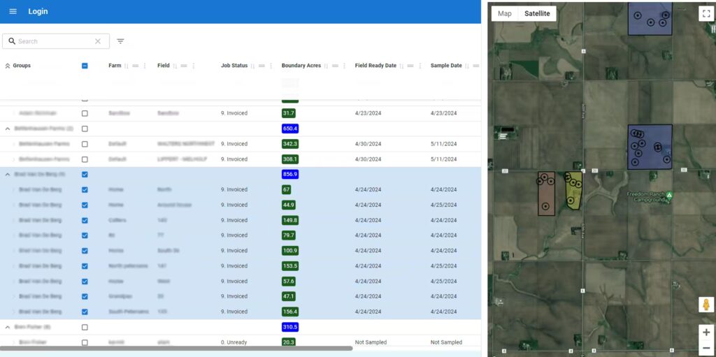 - Instantly see the status of every job, grouped by status, grower, location, etc.